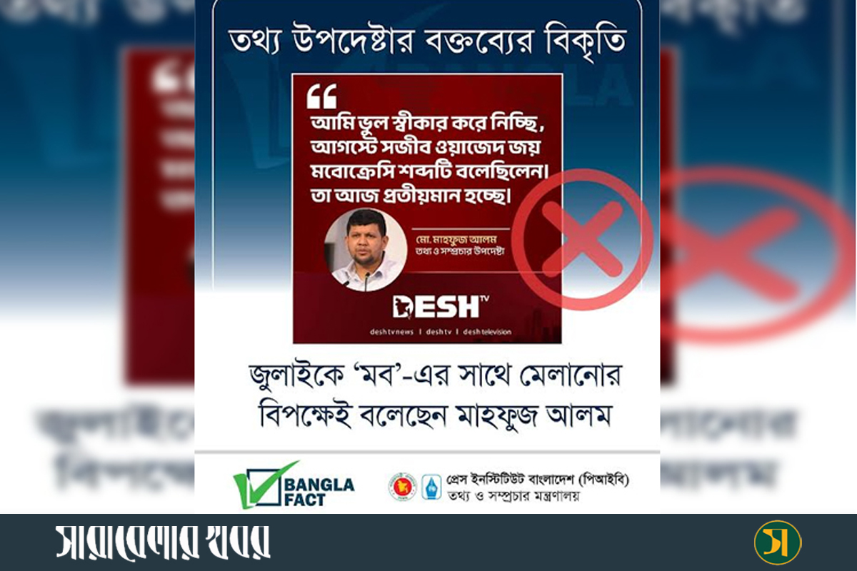 তথ্য উপদেষ্টার বক্তব্য বিকৃত করে অপপ্রচার শনাক্ত করেছে বাংলাফ্যাক্ট