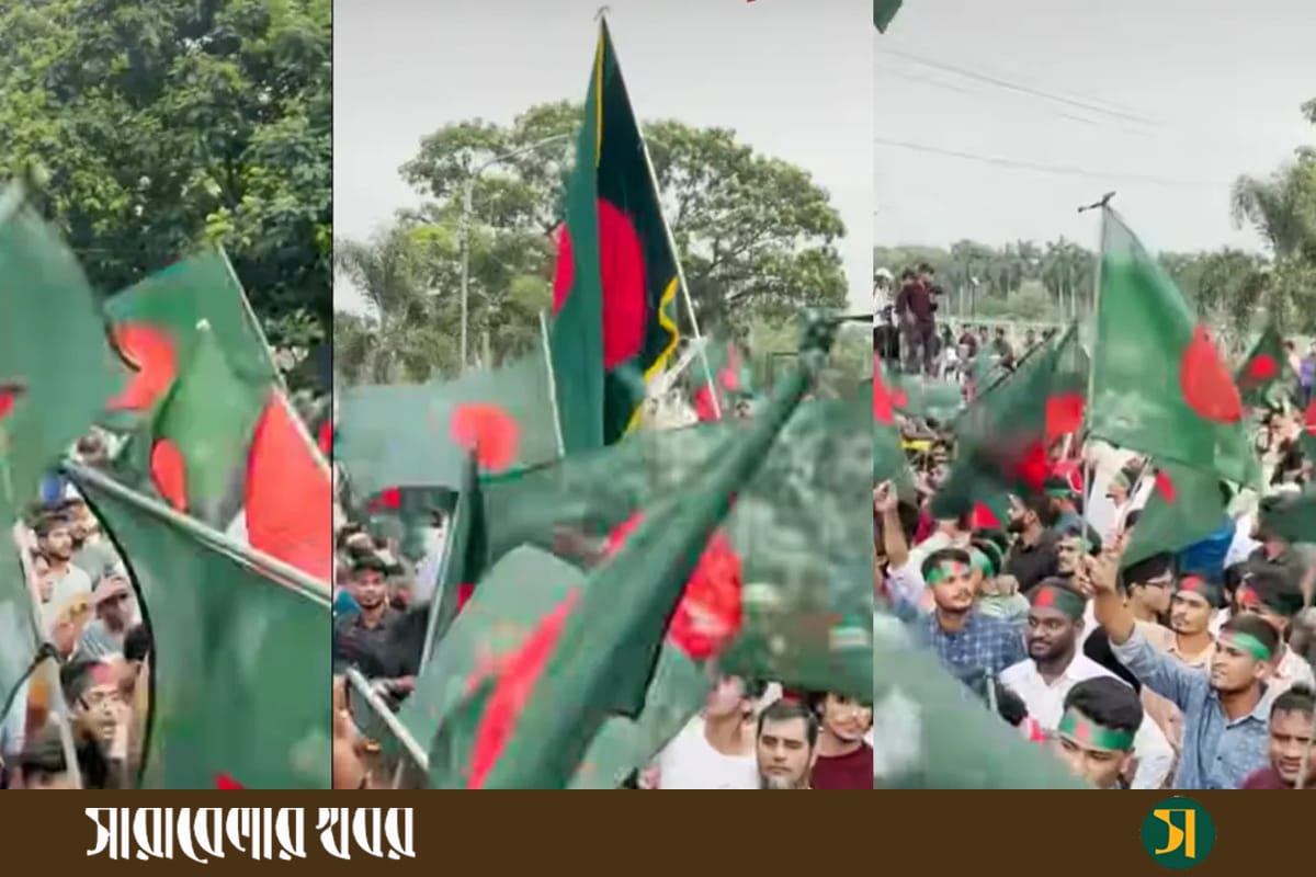 সরেজমিনে দেখা যায়, বৃষ্টি শুরু হলে অনেকে গাছের নিচে আশ্রয় নিচ্ছেন। কেউ আবার নিজের সঙ্গে আনা ছাতা মেলে ধরছেন। এভাবে স্লোগানে স্লোগানে তারা মঞ্চের দিকে এগিয়ে আসছেন। অনেকে কাঁধে জাতীয় পতাকা জড়িয়েছেন। কেউ আবার জুলাই সনদের ব্যাজ ধারণ করেছেন।