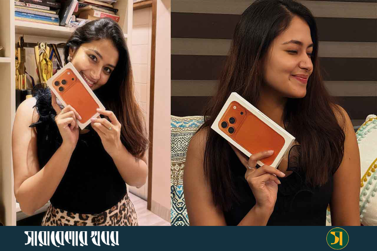 নিজের ফেসবুক-ইনস্টাগ্রামে শেয়ার করা ছবিতে দেখা যায়, সোফায় বসে আছেন ফারিণ। পরনে কালো টপ ও প্রিন্টের স্কার্ট। খোলা চুল আর মিষ্টি হাসিতে হাতে ধরা নতুন আইফোন ১৭। ক্যাপশনে লিখেছেন সংক্ষেপে পেয়েছি।
