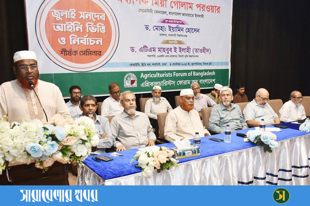 এগ্রিকালচারিস্টস ফোরাম অব বাংলাদেশের (এএফবি) উদ্যোগে জুলাই সনদের আইনি ভিত্তি শীর্ষক সেমিনার অনুষ্ঠিত হয়েছে। বৃহস্পতিবার বিকাল ৪টায় রাজধানীর ফার্মগেটে অবস্থিত বাংলাদেশ কৃষি ইনস্টিটিউটের থ্রিডি হলে এ সেমিনার অনুষ্ঠিত হয়। সেমিনারে প্রধান অতিথির বক্তব্যে তিনি এসব কথা বলেন।
