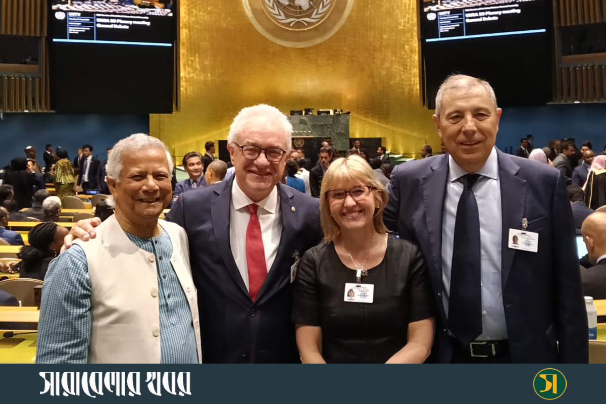 বার্তায় বলা হয়, নিউইয়র্কে জাতিসংঘ সদর দপ্তরে জাতিসংঘ সাধারণ পরিষদের উদ্বোধনী অধিবেশনে যোগ দিয়েছেন প্রধান উপদেষ্টা অধ্যাপক মুহাম্মদ ইউনূস। এ সময় জ্বালানি উপদেষ্টা ফৌজুল কবির খান, পররাষ্ট্র উপদেষ্টা তৌহিদ হোসেন এবং আইন উপদেষ্টা আসিফ নজরুল প্রধান উপদেষ্টার সঙ্গে ছিলেন।