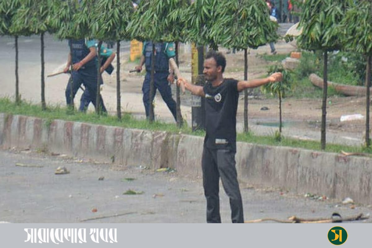পুলিশের লাঠিচার্জে রক্তাক্ত হয়েও দুহাত প্রসারিত করে বুক চিতিয়ে যেন বলতে চায়েছিলেন, এভাবে মানুষ মারা চলবে না। কিন্তু সাধারণ ছাত্রদের বাঁচাতে চাইলেন যিনি, ঠিক তার বুকেই তাক করা হলো বন্দুকের নল। ঘড়ির কাঁটায় তখন দুপুর ২টা ১৭ মিনিট। ঠিক তখনই গর্জে ওঠে মামলার আট নম্বর আসামি পুলিশের সাবেক এএসআই মো. আমির হোসেনের রাইফেল। যে অস্ত্র কেনা হয়েছিল আবু সাঈদের ট্যাক্সের টাকায়, শত্রুর বিরুদ্ধে ব্যাবহারের জন্য।
