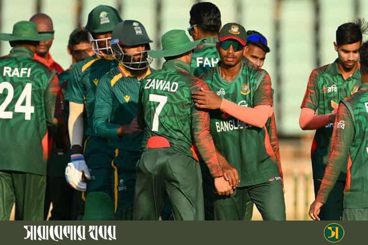 যুব ত্রিদেশীয় সিরিজের ফাইনালে দক্ষিণ আফ্রিকাকে হারিয়ে চ্যাম্পিয়ন হয়েছে বাংলাদেশ অনূর্ধ্ব-১৯ দল। রোববার (১০ আগস্ট) জিম্বাবুয়ের হারারেতে আগে ব্যাট করে নির্ধারিত ৫০ ওভারে ৫ উইকেট হারিয়ে ২৬৯ রানের সংগ্রহ দাঁড় করায় জুনিয়র টাইগাররা। জবাবে ব্যাট করতে নেমে ২ বল বাকি থাকতেই ২৩৬ রানে অলআউট হয়ে যায় যুবা প্রোটিয়ারা। আর তাতেই ৩৩ রানের জয় পায় বাংলাদেশের যুবারা।