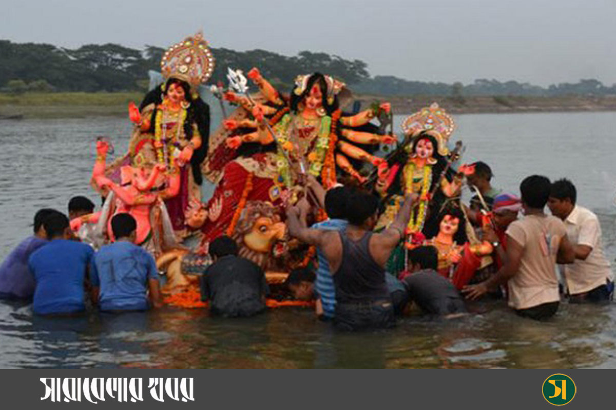 প্রতিমা বিসর্জনের মধ্যদিয়ে শেষ হলো বাঙালি হিন্দু সম্প্রদায়ের প্রধান ধর্মীয় উৎসব শারদীয় দুর্গাপূজা। বিজয়া দশমী তিথিতে ভক্তদের নাচ-গান, ঢাকঢোল আর কাঁসর বাজিয়ে বিসর্জনের মধ্যদিয়ে দেবী দুর্গা ফিরে গেছেন কৈলাসে স্বামীর বাড়ি। সনাতন ধর্মাবলম্বীদের সবচেয়ে বড় এই ধর্মীয় উৎসবের শেষ দিন বৃহস্পতিবার (২ অক্টোবর) দুপুরের পর থেকেই রাজধানী ঢাকাসহ সারা দেশের নদী ও পুকুরে চলে দেবী দুর্গার প্রতিমা বিসর্জন। একইসঙ্গে শুরু হয় সামনের বছরে দেবীর আগমনের জন্য ভক্ত-পুণ্যার্থীদের অধীর অপেক্ষা।