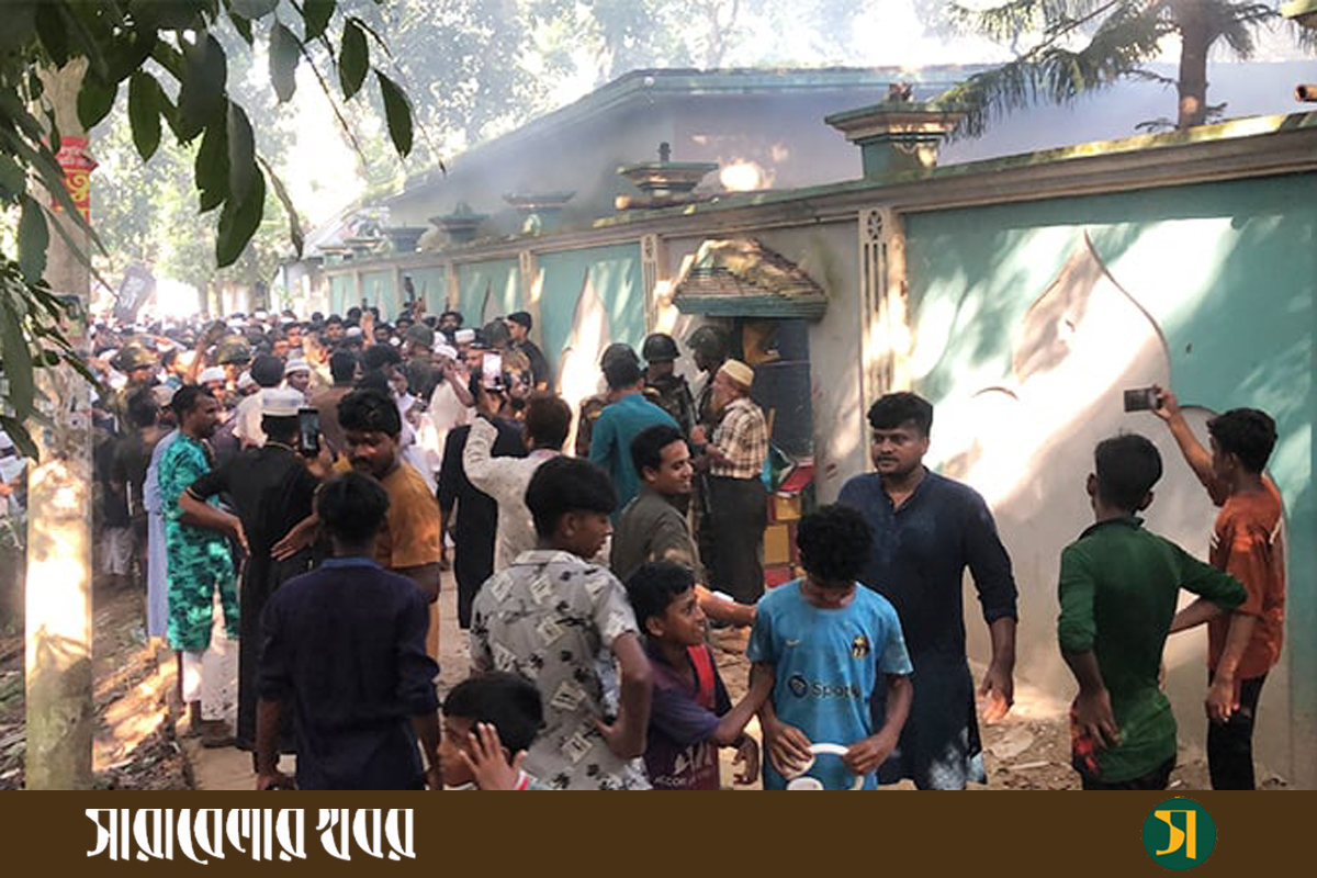 আজ শনিবার ভোর রাতে গোয়ালন্দ ঘাট থানার এসআই মো. সেলিম মোল্লা বাদী হয়ে এই মামলা দায়ের করেন। জানা গেছে, গোয়ালন্দ পৌরসভার ৫ নম্বর ওয়ার্ডে দীর্ঘ দিন ধরে দরবার শরিফ গড়ে তোলেন নুরুল হক। সম্প্রতি তিনি মারা যাওয়ার পর মাটি থেকে কিছুটা উপরে কবর তৈরি করে তাকে দাফন করা হয়। কবরটির কাবা শরিফের আদল দেওয়া হয়। এ নিয়ে গত কয়েকদিন ধরে উত্তেজনা চলছিল। স্থানীয় প্রশাসন দু’পক্ষকে নিয়ে বিষয়টি সমাধানের চেষ্টা করে।