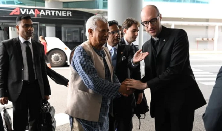 রোমান ক্যাথলিক ধর্মগুরু পোপ ফ্রান্সিসের শেষকৃত্য অনুষ্ঠানে যোগ দিতে ইতালির রোমে পৌঁছেছেন বাংলাদেশের অন্তর্বর্তী সরকারের প্রধান উপদেষ্টা অধ্যাপক ড. মুহাম্মদ ইউনূস। শুক্রবার সন্ধ্যা ৬টা ২০ মিনিটে (বাংলাদেশ সময়) প্রধান উপদেষ্টা ও তার সফরসঙ্গীদের বহনকারী বিমানটি রোমের মাটিতে অবতরণ করে। সেখানে ইতালিতে নিযুক্ত বাংলাদেশের রাষ্ট্রদূত অধ্যাপক ইউনূসকে স্বাগত জানান।