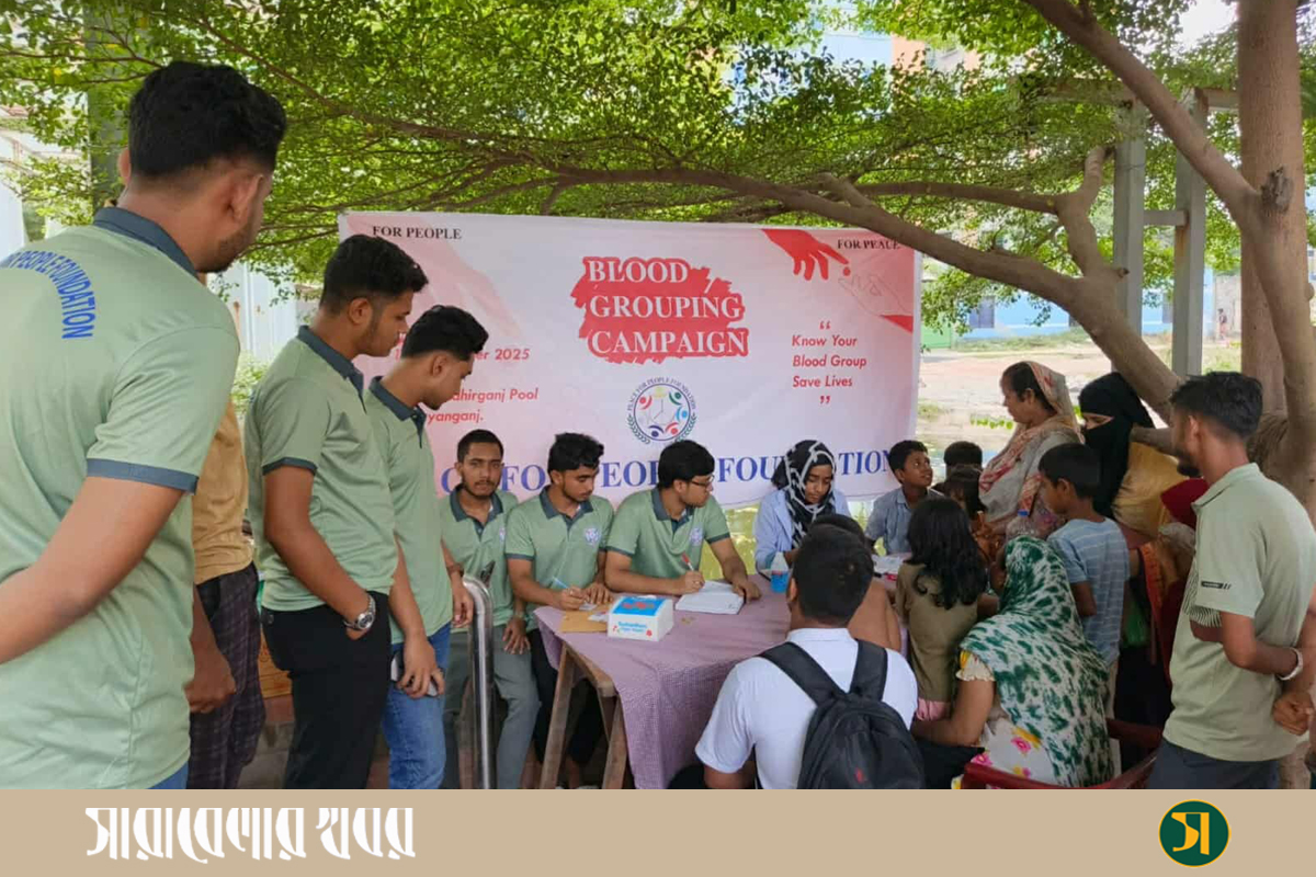 ফ্রীতে নিজ রক্তের গ্রুপ জানলেন তিন শতাধিক মানুষ। স্বেচ্ছাসেবী সংগঠন পিস ফর পিপল ফাউন্ডেশনের ‘ফ্রী রক্তের গ্রুপ নির্ণয় ক্যাম্পেইন’ এর মাধ্যমে এই সুযোগ পান তারা। বৃহস্পতিবার নারায়ণগঞ্জ মহানগরীর সিদ্ধিরগঞ্জের মিজমিজি এলাকায় এই ক্যাম্পেইন পরিচালিত করে সংগঠনটি।