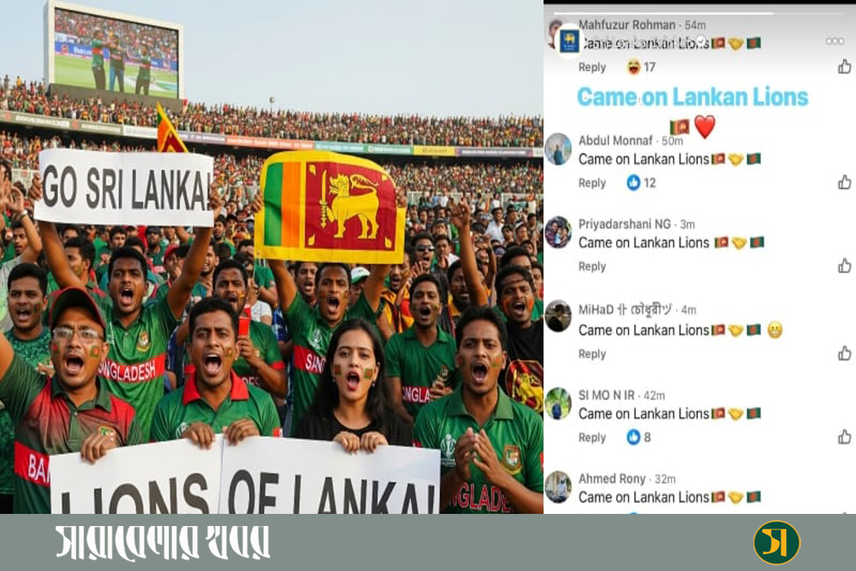 শ্রীলঙ্কান ক্রিকেট বোর্ডের অফিসিয়াল ফেসবুক পেজ ভরে গেছে বাংলাদেশি সমর্থকদের শুভকামনায়। এমনকি বোর্ড নিজেদের স্টোরিতেও শেয়ার করেছে একটি পোস্ট, যেখানে কমেন্ট করা প্রায় সবাই বাংলাদেশি ভক্ত। সবার অনুরোধ একই, আজ যেন জয় তুলে নেয় শ্রীলঙ্কা।